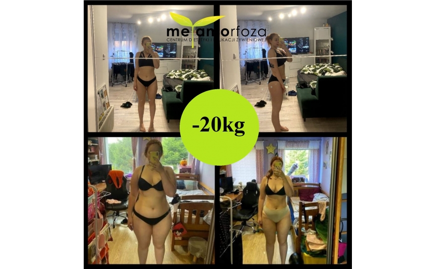 Pani Wiktoria schudła 20kg. Dziś nie tylko cieszy się wymarzoną sylwetką, ale również większą pewnością siebie. Dzięki naszej współpracy i swojemu zaangażowaniu osiągnęła wymarzony cel. Kilka słów od Pani Wiktorii:„Zapisanie się do Pani Kasi było najlepszą decyzją, jaką dokonałam w tym roku. Początek diety był ciężki, ponieważ musiałam całkowicie zmienić nawyki żywieniowe. Widząc znikające kilogramy nabierałam motywacji i wiary w siebi...