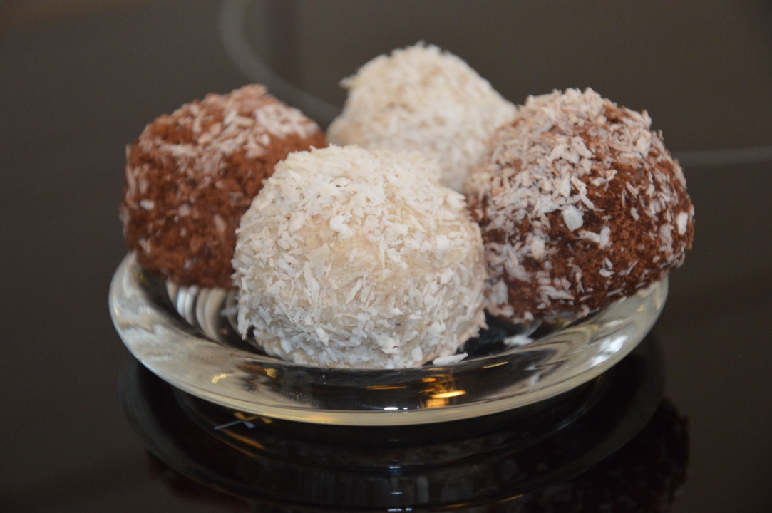 – Z masy formujemy małe kulki i obtaczamy je kolejno w wiórkach kokosowych oraz kakao.