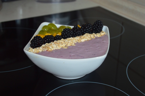 Na dekorację odłóż kilka jeżyn i winogron, 2 łyżki płatków owsianych